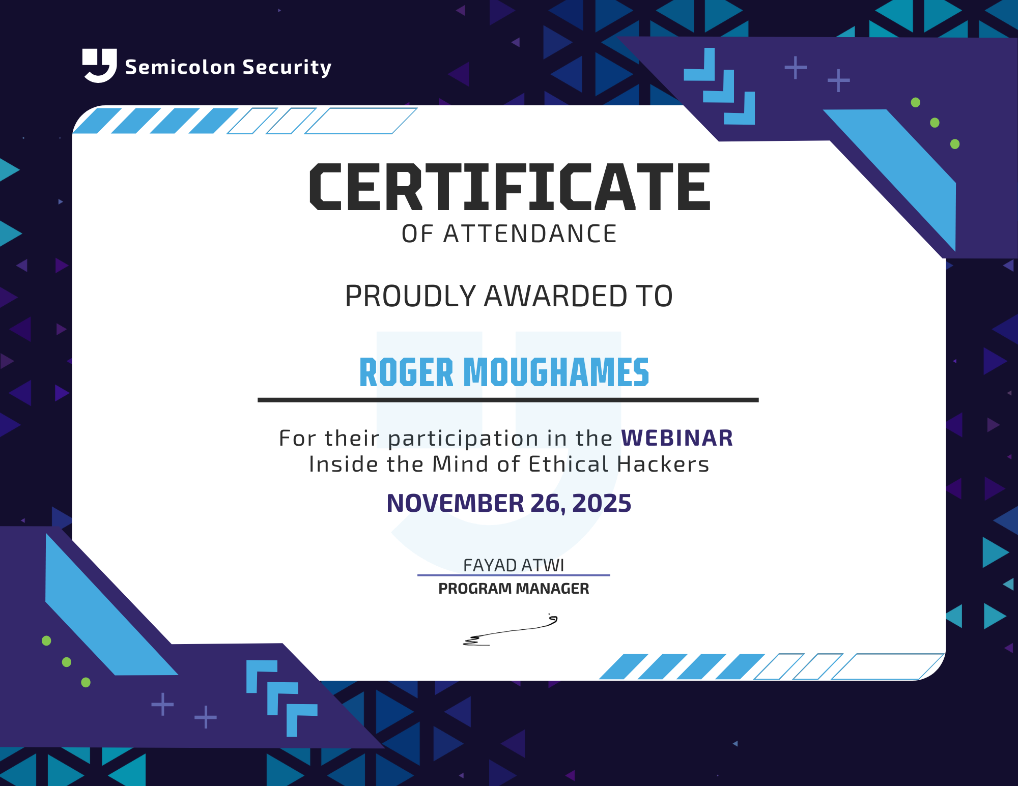 Roger Moughames graduated from Arts, Science and Technology University in Lebanon (AUL) with a Bachelor's degree in Business Administration specializing in Management Information Systems (MIS). He also holds a Lebanese Baccalaureate Diploma II in Economics and Sociology from La Sagesse School. He is also a certified football coach.